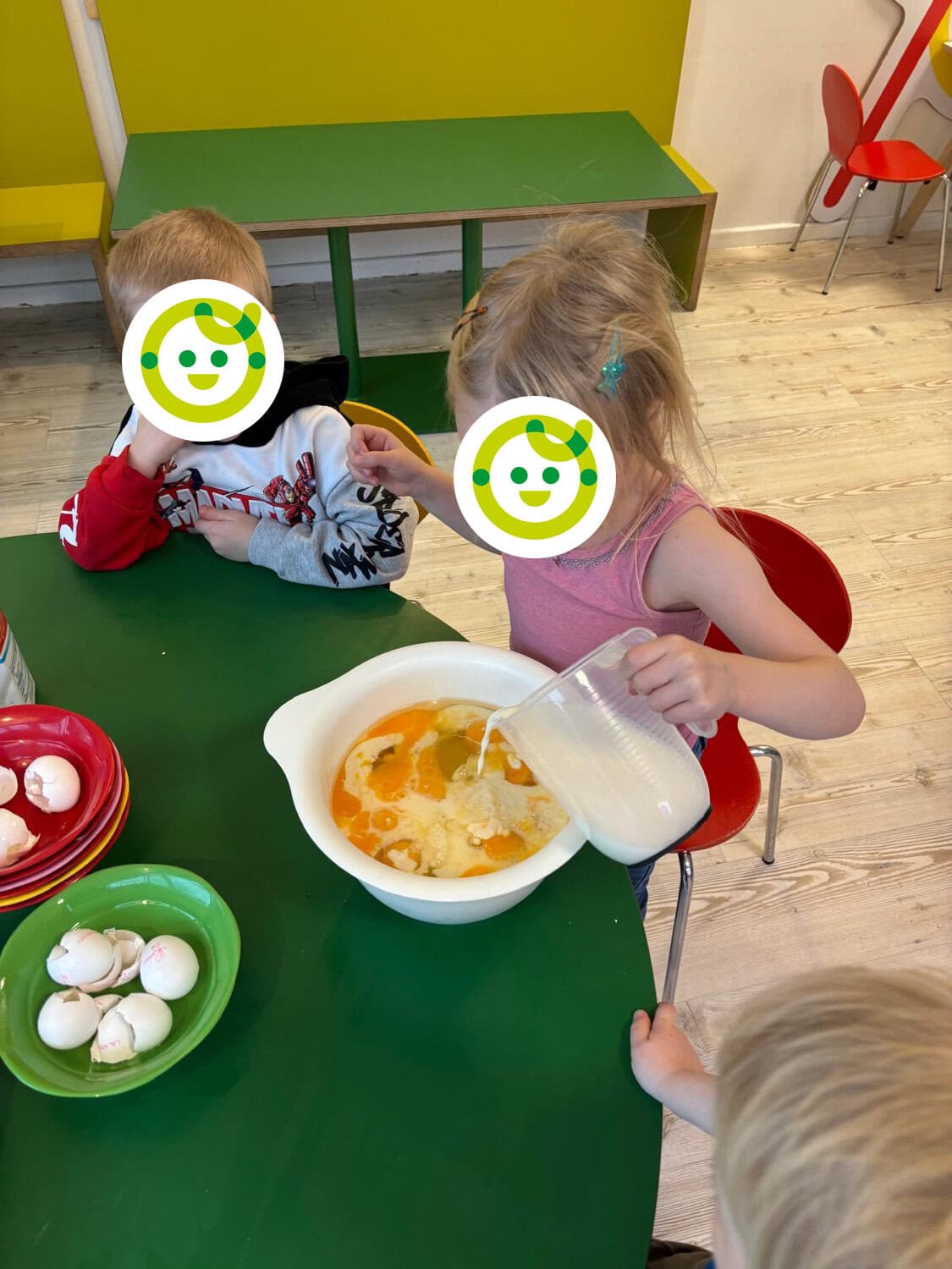 Im oberen Bereich sind die Elementargruppen untergebracht. Hier gibt es individuell eingerichtete Gruppenräume, eine integrierte Vorschulecke mit zwei Käseecken – den Rückzugsorten für die Großen – sowie ein separates Kinderrestaurant, in dem gemeinsame Mahlzeiten eingenommen und auch kleine Küchenerlebnisse, wie Backen oder die Milchshake-Zubereitung, stattfinden.