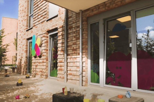 Ein besonderes Merkmal unserer Kita sind die großen, lichtdurchfluteten Fenster, die sich auf der Elementar-Seite des Hauses befinden. Sie schenken Helligkeit und Offenheit und schaffen gleichzeitig eine direkte Verbindung zur Natur mitten in der Stadt. Die Kinder können von drinnen beobachten, wie sich das Jahr verändert. Wie Blätter bunt werden und fallen, wie Schneeflocken an der Scheibe tanzen oder wie die Sonne den Innenhof in warmes Licht taucht. An warmen Tagen öffnen wir die Fenster, legen Decken auf die angrenzende Wiese, sperren den Bereich mit kleinen Hütchen ab und schon entsteht ein offener Spielraum zwischen drinnen und draußen. Manchmal holen wir sogar etwas Schnee hinein, wenn draußen alles weiß glitzert. Ein tolles Erlebnis, das die Kinder begeistert. Diese Fenster machen das Leben draußen für die Kinder greifbar, erlebbar und nah. Ein Stück Natur mitten im Kita-Alltag.