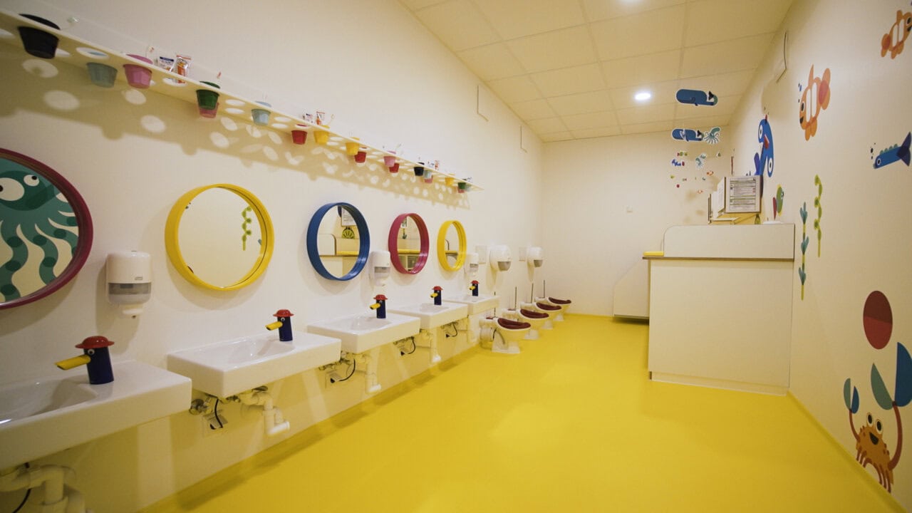 Das Mittagessen wird in gemütlicher Runde im Kinderrestaurant gegessen. Dabei legen wir großen Wert auf Selbstständigkeit – bereits die Krippenkinder dürfen sich selbst bedienen. Danach folgt die Mittagsruhe: Die Jüngsten schlafen begleitet von Geschichten oder leiser Musik, während die älteren Kinder in eine entspannte Zeit mit Büchern, Hörspielen oder ruhigem Spiel eintauchen.