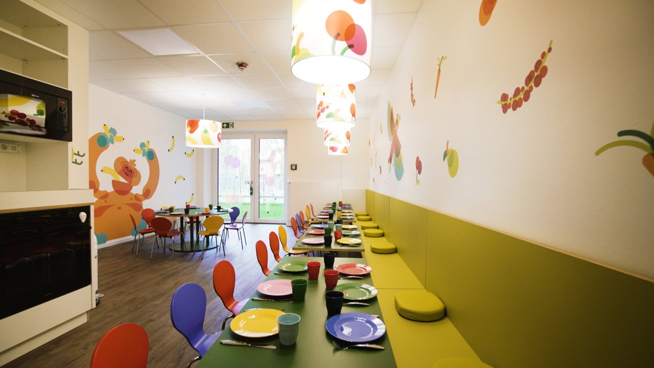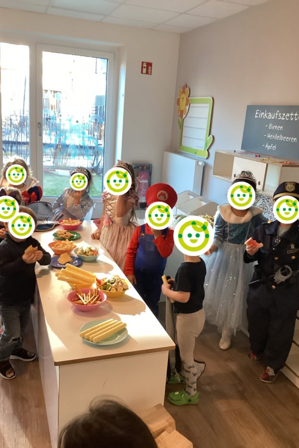Eine gesunde und kindgerechte Ernährung ist für uns ein fester Bestandteil des Tagesablaufs. Die warmen Mahlzeiten werden täglich frisch von unserem Caterer Daily You geliefert. Unser Speiseplan umfasst gesunde und schmackhafte, überwiegend vegetarische Gerichte. Einmal wöchentlich bieten wir auch Fleisch und einmal Fisch an. Die Kinder nehmen ihre Mahlzeiten gemeinsam in unserem Kinderrestaurant ein. In einer ruhigen und angenehmen Atmosphäre lässt es sich besser genießen. Zwischen den Mahlzeiten bieten wir kleine Snacks wie Obst, Knäckebrot oder Reiswaffeln an. Wir legen Wert darauf, dass sich die Kinder wohlfühlen und ihre Mahlzeiten in entspannter Gemeinschaft erleben.